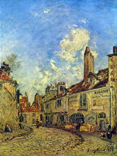 Artist: Johan Barthold Jongkind - Title: Street in Nevers - Medium: Fine Art Reproduction Giclee on Canvas - Image Size: Approximately 20 inches x 15 inches - Unframed on Unstretched Canvas - Biography: The Dutch painter Johan TJongkind was considered one of the forerunners of the impressionist movement and often dubbed "The Father of Impressionism". He developed an idiosyncratic style which earned him the admiration of Edouard Manet, Claude Monet, Camille Pissarro and Eugene Boudin.