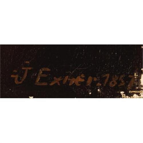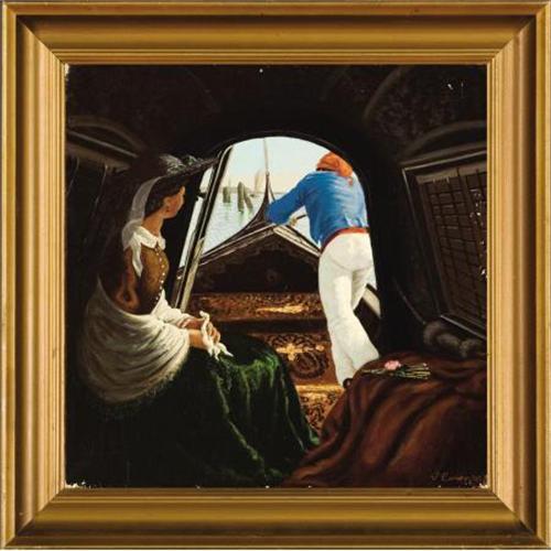 <B>JOHAN JULIUS EXNER (Danish, 1825-1910)</B></I><BR><I>Gondola Excursion</B></I>, 1857<BR>Oil on canvas<BR>13-3/4 x 13-3/4 inches (34.9 x 34.9 cm)<BR>Signed lower right: <I>J Exner.1857</B></I><BR>Inscribed twice on stretcher:<I> Jul Exner. En Gondol</B></I><BR> <B>Condition Report:</B> Some minor scattered strengthening, minor scattered paint loss at right edge.<BR><BR><b>Shipping:</b> Framed - with Glass, Small (<a target="_blank" href="http://www.heritageauctions.com/common/shipping.php">view shipping information</a>)