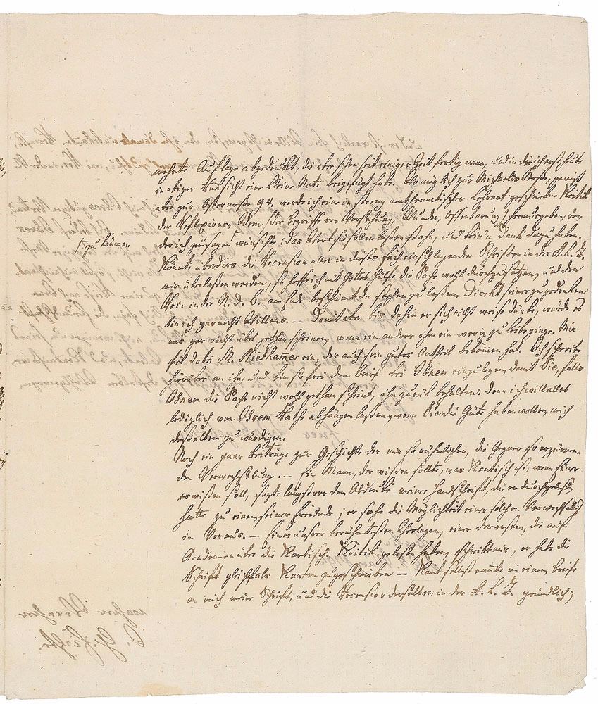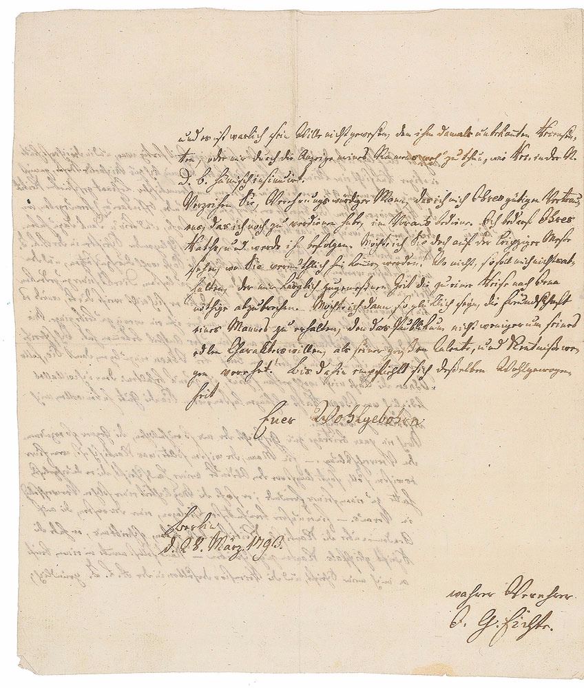 German philosopher (1762-1814) whose work forms a bridge between the ideas of Kant and Hegel. Rare ALS in German, signed “J. G. Fichte,” four pages on two adjoining sheets, 7.5 x 8.75, March 28, 1793. Extensive untranslated letter to Gottlieb Hufeland, professor of law in Jena and one of the editors of 'Allgemeine Literaturzeitung,' who asked Fichte for cooperation. The main portion of the letter concerns Fichte’s 1792 script 'Vermerk einer Kritik aller Offenbarung,' which was printed without the name of the author and was incorrectly attributed to Immanuel Kant. In fine condition, with slight show-through from handwriting to opposite sides.