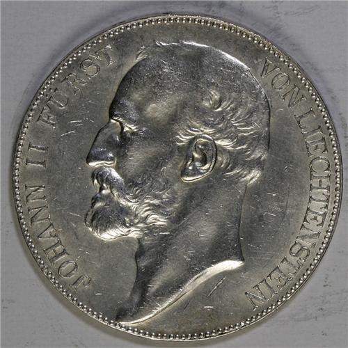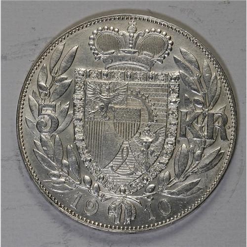 <B>Johann II 5 Kronen 1910, </B></I>KM-Y4, lustrous AU-UNC, two large contact marks below the Prince's bust.