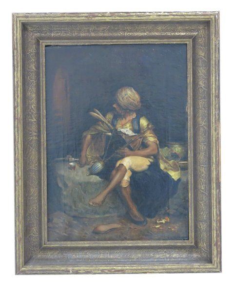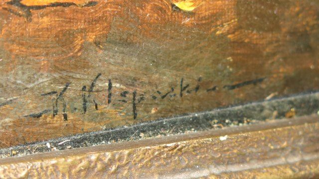 Oil on canvas. Framed. Signed lower right. Johann Klepinski, European (1872-1927). Approx. 18" x 13" with out frame, 24" x 19" with frame. Restorations.