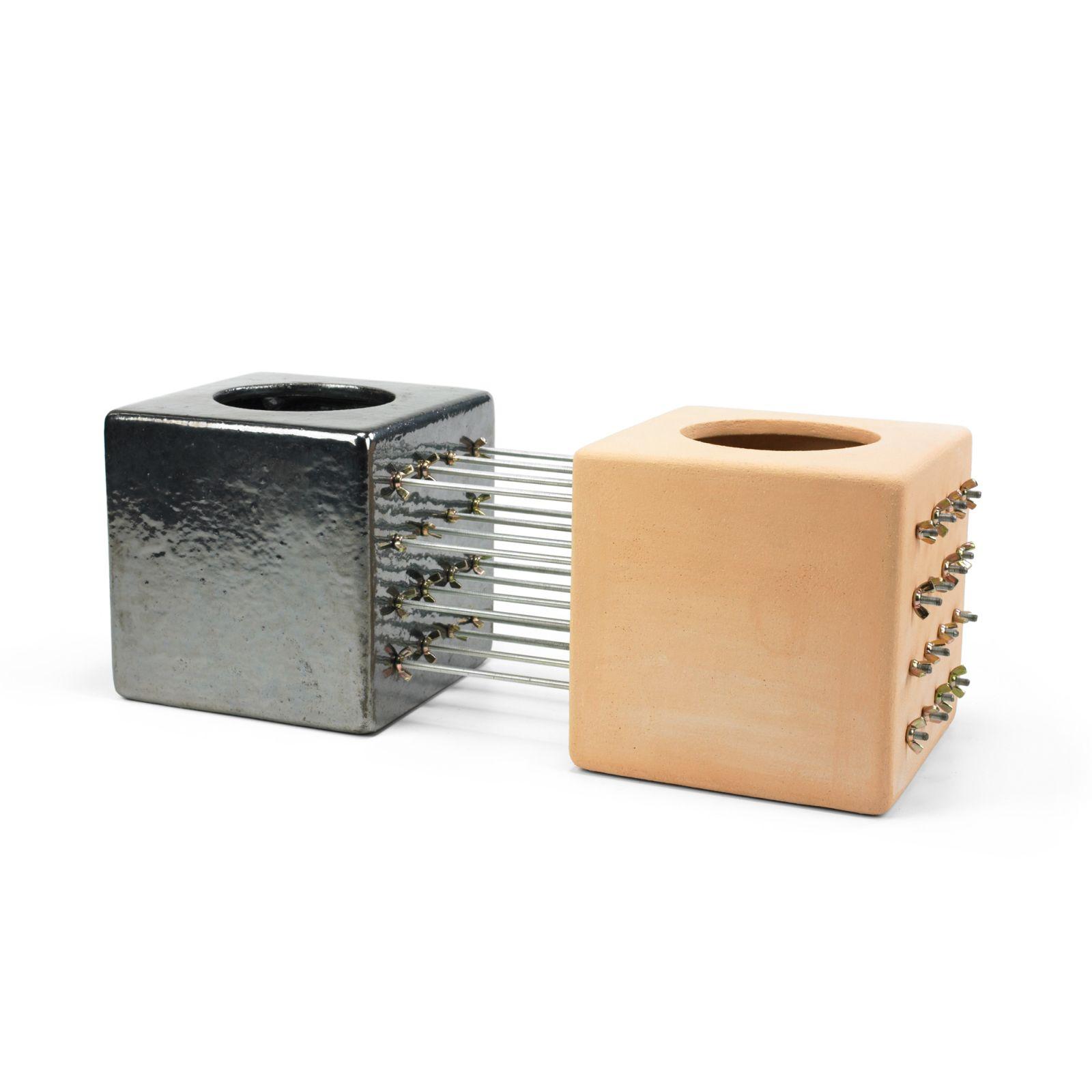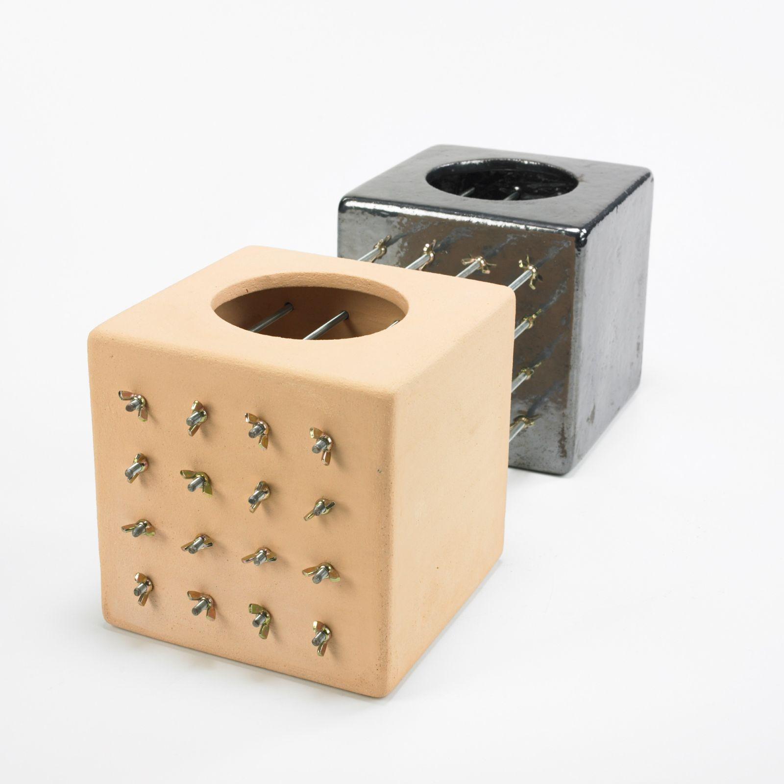 glazed and bisque ceramic, stainless steel
