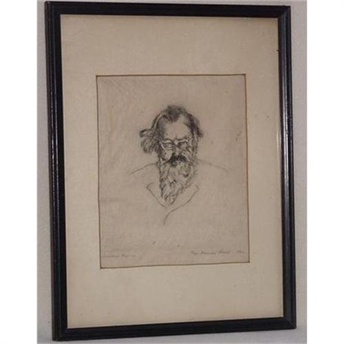 An engraving of Johannes Brahms, 9 3/4" X 12 3/4" framed size. Signed in pencil lower right Raye Neiman Slater 1932.
