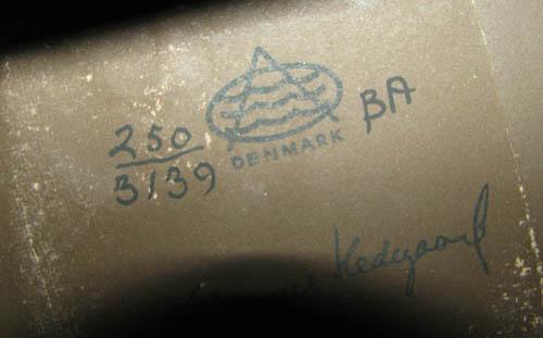 Signature: marked on underside Denmark, Johannes Heddegaard