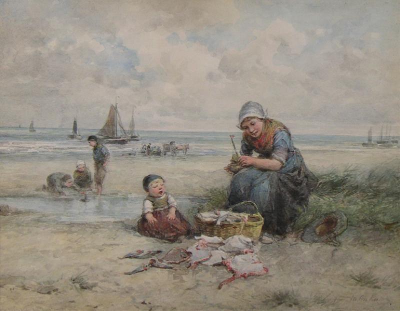 Dutch [1859-1896] FISHERWOMAN WITH HER CATCH watercolour on paper 12 x 15.75 in. (30.5 x 40 cm) signed