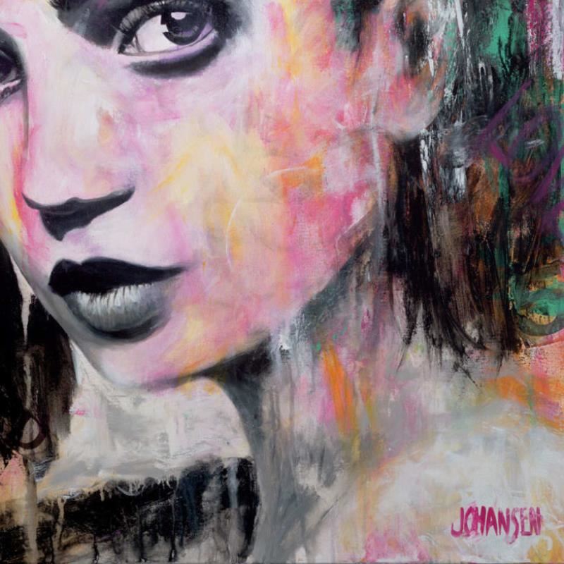 "Urban Reflection" is an original painting, mixed media on stretched canvas, by Jay Johansen. It is hand signed by the artist and accompanied by a certificate of authenticity. Measures approximately 44" x 35" (image).