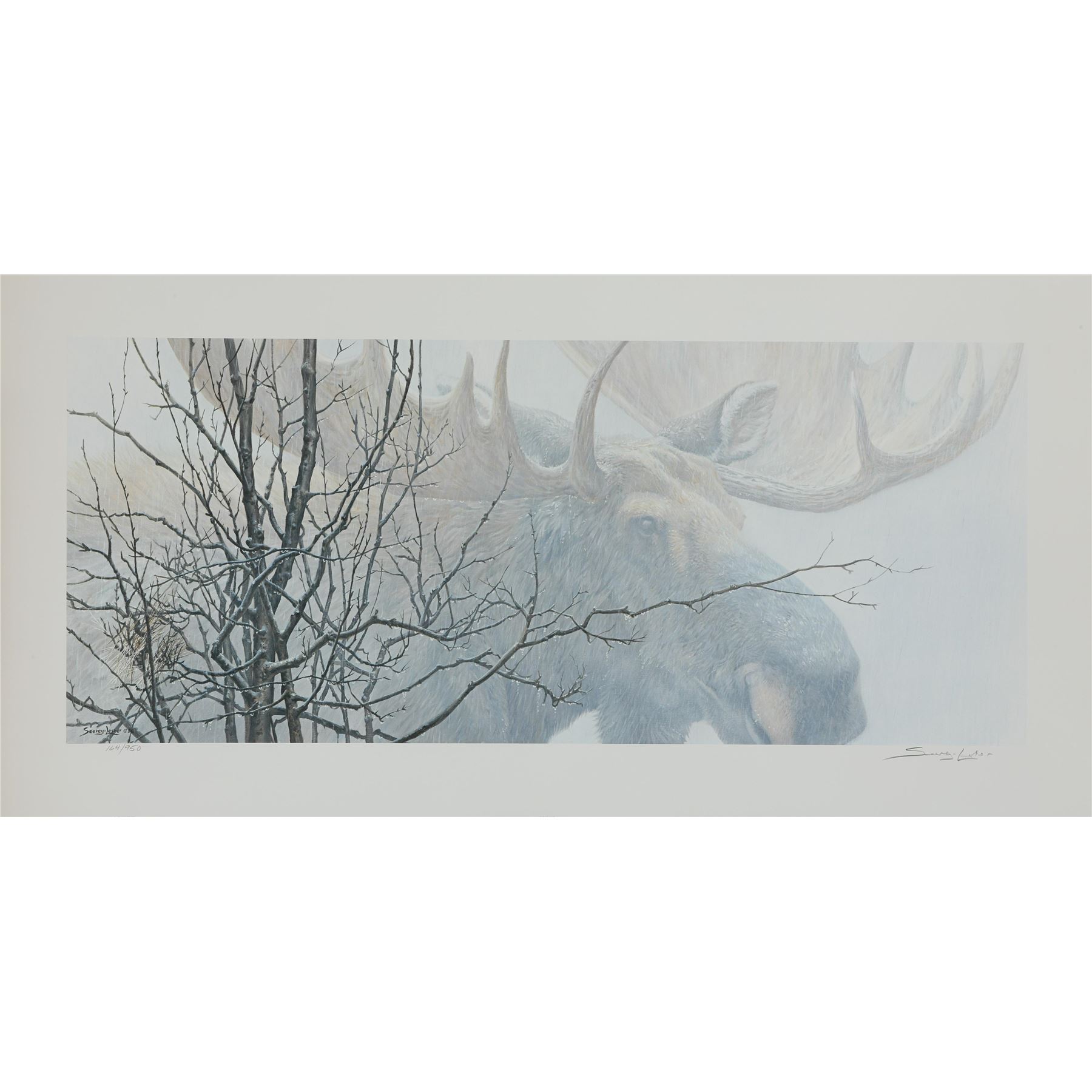 Johhn Seerey-Lester's "Moose Hair" limited edition print, signed and numbered 164/950. This print is in mint condition, in its original folder. Image- 13 3/4" x 32 1/2". Paper- 19" x 37 1/4"