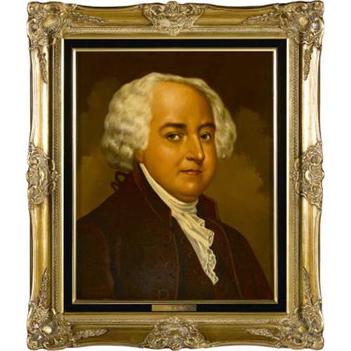 <B>John Adams and Abigail Adams Oil Portraits</B></I> by Lawrence Williams. Each oil portrait is 16" x 20" and framed in gilt to an overall dimension of 23" x 37" with an engraved brass nameplate at the bottom of the frame.<BR><BR><b>Shipping:</b> Other (oversized items, group lo (<a target="_blank" href="http://www.heritageauctions.com/common/shipping.php">view shipping information</a>)