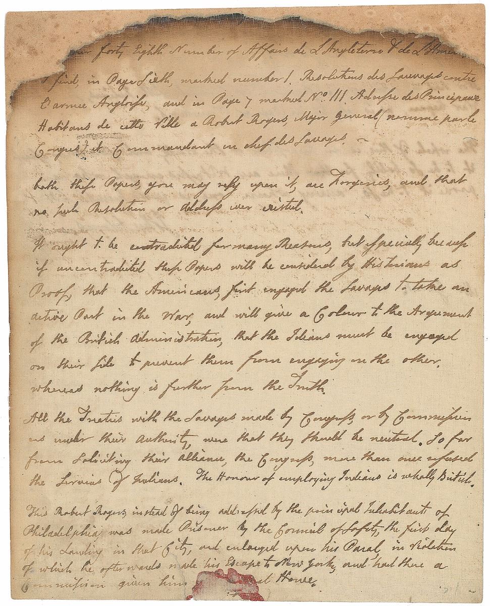 It ought to be contradicted for many reasons, but specially because if uncontradicted these papers will be considered by historians as proof that the Americans, first engaged the savages to take an active part in the war, and will give a colour to the argument of the British administration, that the Indians must be engaged on their side to prevent them from engaging on the other. Whereas nothing is further from the truth.