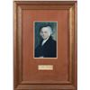 Highly sought-after large ink signature, "John Adams,” on an off-white 3.5 x 1 sheet. Double-cloth-matted and framed with a portrait to an overall size of 18 x 25. In fine condition. An impressive and crisp signature from the scarce founding father.