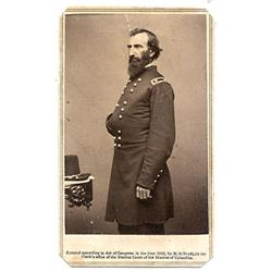 Participated in the Black Hawk War. Congressman from Illinois. War service marred by his being a braggart. Knees-up by Anthony/Brady with Brady's 1862 copyright on the mount recto. Mount corners clipped. Light scratch from the top of his head to the top of the mount. [D2+]