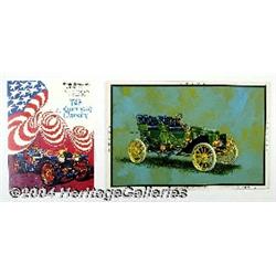 <B>John Amendola - "1909 Stanley Steamer, Model E2 Runabout" Aurora Model Kit Box Original Artwork (Aurora, 1974).</B></I> The 1909 Stanley Steamer was a revolutionary car when it was first released. The first car to exceed speeds of 120 miles per hour, it was smooth running and reliable, and was a favorite when it came to short-track racing. In 1974, Aurora issued a line of model kits recreating this and five other classic automobiles. The stunning box artwork by John Amendola (perhaps best known for his classic aviation art) was certainly a selling point. The piece offered here is in Excellent condition, and displays deep, rich colors, and impeccable attention to detail. Measuring approximately 16" x 10.5" overall, this piece is accompanied by a letter from the artist and a copy of the original Aurora sales brochure. <BR><BR><B>Important notice:</B> Heritage usually auctions material at the rate of 200-250 lots per hour. On some occasions eBay Live bid software or the Internet may not be able to keep up with the pace of the auction. We recommend placing a realistic absentee bid now as insurance to avoid disappointment. Occasionally the auctioneer may eliminate or reject an eBay Live bid, and the auctioneer may also reopen a lot after the close of the eBay live bidding (usually because we missed an audience bid), and may reject your bid even if it shows you as the winning bidder. By bidding via eBay Live, you agree that Heritage may award the lot to another bidder at its sole discretion under the circumstances described above or any other reasonable circumstances. Since eBay bids are not shown to us until we open the lot on the floor, we treat those bids just like floor bids. In most cases the floor responds before the eBay bid is presented to us, due to Internet lag time, so for consistency we have made it a policy that floor bids are always considered first over tie eBay live bids. Also please note that all Heritage lots purchased through eBay Live carry a 20% Buyer's Premium. Please make sure you read the Terms and Conditions before you bid.