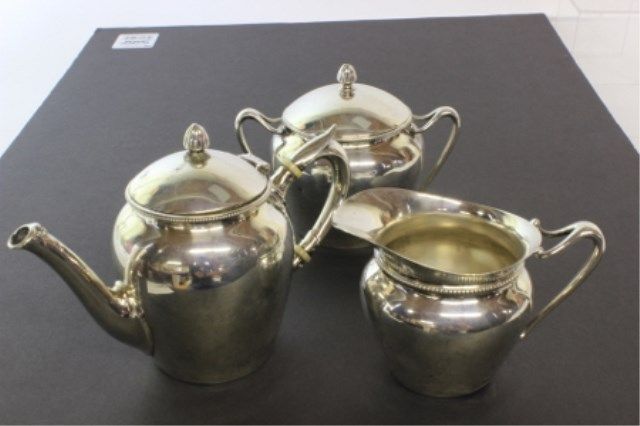 coffee pot, sugar and creamer in silverplate by Gorham Co. pattern No. 0370. Est. 350-550