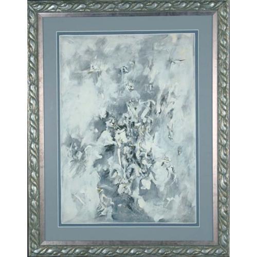 This is a beautiful, original acrylic on paper, abstract painting by John Bageris. It is full of smooth, curving strokes who?s colors flow into each other and create great unity throughout the painting. This painting is done in a monochromatic style for the most part, broken only by the few golden highlights. Though this picture does not contain much color, its tonal quality is excellent. Making sharp contrast where desire, and yet in other areas allowing for a smooth transition in tones. This 38? x 30? painting is beautifully ...