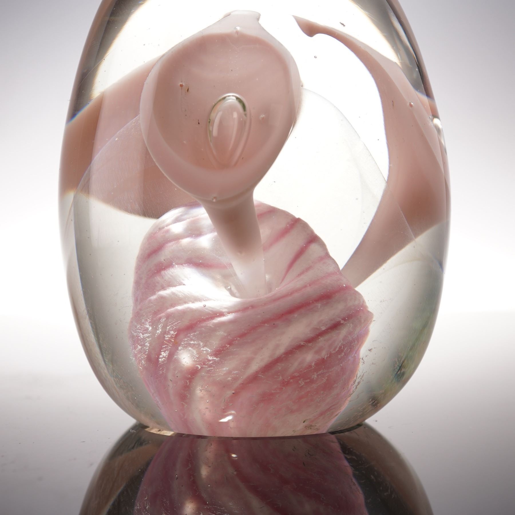 John Barlin Studio Glass Paperweight, Cala Lily Flowers, Artist Signed