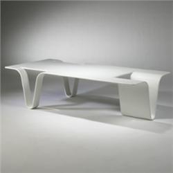 John Beckmann and David Serero Una table Dupont/Corian USA corian 60"w x 30"d x 16"h Co-designed by John Beckmann & David Serero. Unique prototype coffee table sponsored by Dupont/Corian made of 1/4" thick Corian, computer CNC milled and thermoformed. Signed.