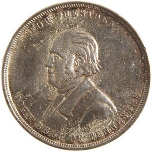 <B>John Bell Campaign Medal in White Metal</B></I> 38 mm, Sullivan-DeWitt JBell 1860-1. Inscription around the edge reads "For President John Bell of Tennessee", with the bust of Bell facing left. The reverse is an eagle with wings bearing the United States shield with 13 stars and inscription reading " E Pluribus Unum". Very bright condition with only a few small nicks along the edge.<BR><BR><b>Shipping:</b> Miscellaneous Collectibles, Smal (<a target="_blank" href="http://www.heritageauctions.com/common/shipping.php">view shipping information</a>)