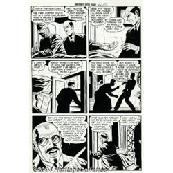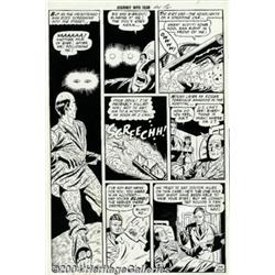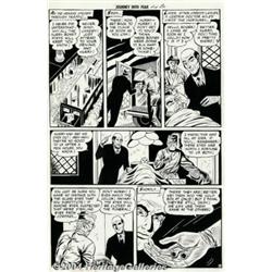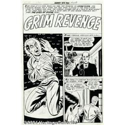John Bell (attributed) - Original Art for Journey into Fear #21, Complete 7-page Story, "Grim Revenge" (Superior-Dynamic Publications, 1954). The art in this eerie story has a very stylized approach. If you enjoy the "noir" work of Charles Burns, Dick Sprang, or Chester Gould, you will enjoy this macabre story. In the days before organ donation, a greedy surgeon makes a deal with an undertaker to steal the eyes from the departed to transplant into the wealthy and blind. Page six features a surreal floating eyeball sequence that is riveting. Of course, the story has a twist ending, the "grim revenge" that is full of ironic karma. The inks are super-snappy as they feature some of the blackest, most dense, drawing ink ever used! Ultra-noir! The overall art paper measures 12.75" x 19", with an image area of 12" x 18". The art is in excellent condition, and the pages are super-clean. Important notice: Heritage usually auctions material at the rate of 200-250 lots per hour. On some occasions eBay Live bid software or the Internet may not be able to keep up with the pace of the auction. We recommend placing a realistic absentee bid now as insurance to avoid disappointment. Occasionally the auctioneer may eliminate or reject an eBay Live bid, and the auctioneer may also reopen a lot after the close of the eBay live bidding (usually because we missed an audience bid), and may reject your bid even if it shows you as the winning bidder. By bidding via eBay Live, you agree that Heritage may award the lot to another bidder at its sole discretion under the circumstances described above or any other reasonable circumstances. Since eBay bids are not shown to us until we open the lot on the floor, we treat those bids just like floor bids. In most cases the floor responds before the eBay bid is presented to us, due to Internet lag time, so for consistency we have made it a policy that floor bids are always considered first over tie eBay live bids. Also please note that all Heritage lots purchased through eBay Live carry a 20% Buyer's Premium. Please make sure you read the Terms and Conditions before you bid.