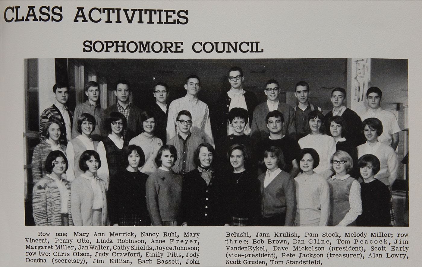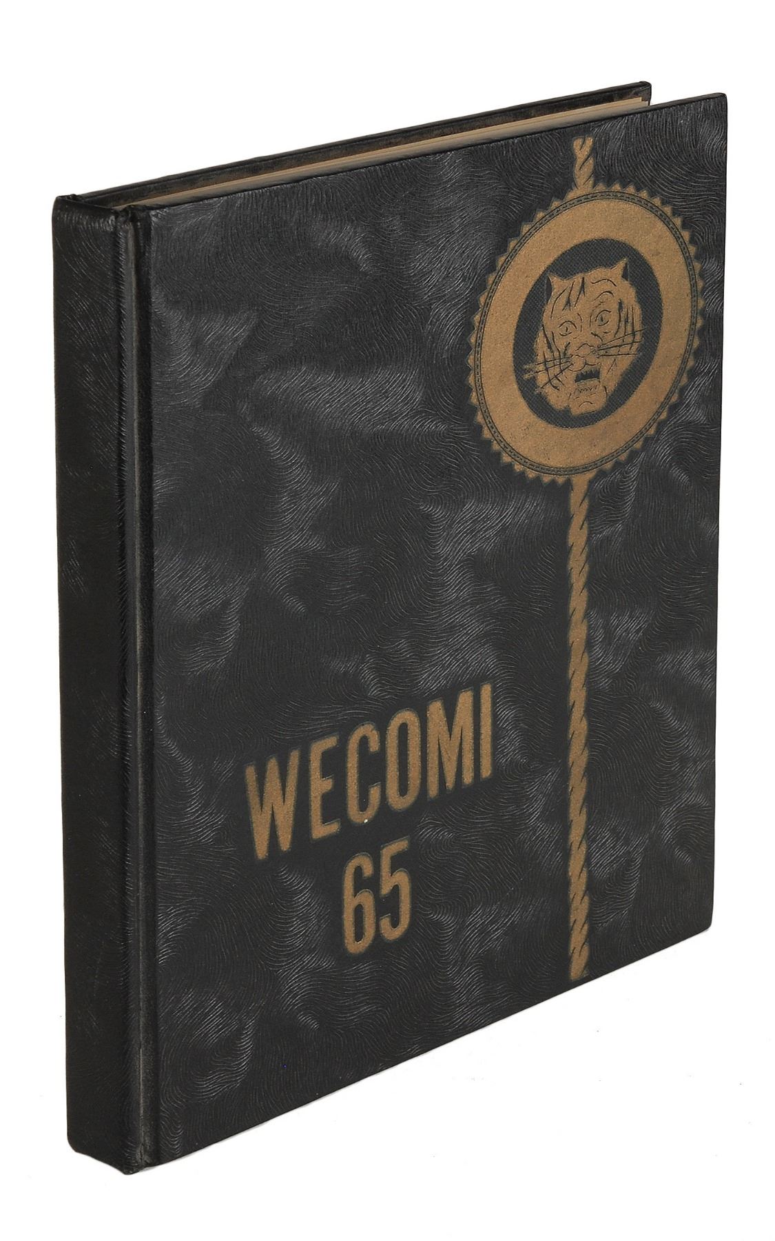 Original 1965 Wheaton Central High School 'Wecomi' yearbook, 8.5 x 11, 176 pages, depicting Belushi as a member of the sophomore class on page 84, as a member of the football team on page 104, and as a member of the student council on page 143. His sister, Marian Belushi, is pictured on page 24 as a senior. In fine condition.