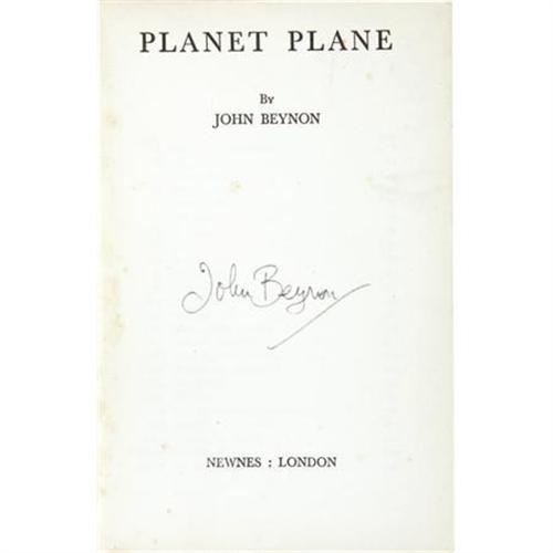 <B>[John Wyndham] John Beynon. </B></I><B><I>Planet Plane</B></I></B></I><B>.</B></I> London: Newnes, [1936].<BR> <BR>First edition, Currey state B. Signed by the author on the title page. Twelvemo. 248 pages.<BR><BR>Publisher's original yellow cloth with titles in black on the spine. Boards and spine soiled. Edges of boards bumped. Text block slightly skewed. Hinges cracked. Light foxing on the pastedowns and endpapers with a few spots on the edges. Currey priority A dust jacket with old taped repairs to the corners and head and foot of the spine. Small area of loss at the head of the spine. Jacket worn at the extremities and faded on the spine panel. Good. <I>From the Robert and Diane Yaspan Collection.</B></I><BR><BR><b>Shipping:</b> Books & Catalogs (<a target="_blank" href="http://www.heritageauctions.com/common/shipping.php">view shipping information</a>)