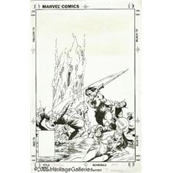<B>John Buscema - Conan the Barbarian #149 Cover Original Art (Marvel, 1983).</B></I> Robert E. Howard's acclaimed Hyborian Age hero! Unchained! Untamed! Big John Buscema saturates this death-dealing delineation with a force beyond pencil, beyond ink. He applies his superb understanding of sinew and motion to create this majestic illustration of malevolence in action. The art measures 11" x 17" overall with a 10" x 15" image area, and in Excellent condition. Pure Buscema, pure Cimmerian... bid now!