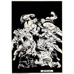 John Buscema - Original Art Cover Recreation for Avengers King-Size Special #2 (undated). Believed to be Buscema's crowning achievement outside of his classic Silver Surfer work, this is a fantastic recreation of the cover that featured the original (circa 1963) Avengers versus the current (circa 1968) Avengers, impossibly ready to wage a bombastic battle. Buscema's legend has grown steadily throughout the years, this growth being reflected in the increasing prices of his art. The art is in excellent condition, and measures a large 18" x 26". Most of Buscema's recreations were far smaller than this piece, making this oversized gem a real treasure. Important notice: We expect to be auctioning lots at the rate of 200-250 per hour. Sometimes eBay Premier live bid software cannot keep up with that pace, so we strongly recommend that you place a realistic proxy bid now as insurance to avoid disappointment. Also please note that all Heritage/CAA lots purchased through eBay Premier carry a 20% Buyer's Premium.