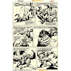 John Buscema - Original Art for Tarzan #5, page 30 (Marvel, 1977). Tarzan, the Lord of the Jungle, comes to life in this action-packed page. This piece, featuring Tarzan in pitched battle against savage gorillas in all six panels, demonstrates the global appeal of this legendary character, and spotlights the incomparable artwork of industry giant John Buscema. The page is in excellent condition with only minor staining (common in pages from this era), and measures 10" x 15". Important notice: We expect to be auctioning lots at the rate of 200-250 per hour. Sometimes eBay Premier live bid software cannot keep up with that pace, so we strongly recommend that you place a realistic proxy bid now as insurance to avoid disappointment. Also please note that all Heritage/CAA lots purchased through eBay Premier carry a 20% Buyer's Premium.