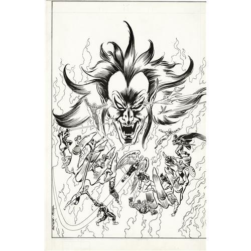 <B>John Buscema and Tom Palmer - Mephisto vs. the Avengers and X-Men Illustration Original Art (Marvel, circa 1987).</B></I> The devil you say! In 1987, his satanic majesty, Mephisto, starred in a miniseries, <B>Mephisto Vs...</B></I>, in which he battled the Fantastic Four, X-Factor, X-Men, and the Avengers, one in each issue. John Buscema provided the pencils for the covers of issues #2 - 4, and the interiors for the series. This illustration has an image area of 10" x 15" and the condition is Excellent. <BR><BR><B>Important notice:</B> Heritage usually auctions material at the rate of 200-250 lots per hour. On some occasions eBay Live bid software or the Internet may not be able to keep up with the pace of the auction. We recommend placing a realistic absentee bid now as insurance to avoid disappointment. Occasionally the auctioneer may eliminate or reject an eBay Live bid, and the auctioneer may also reopen a lot after the close of the eBay live bidding (usually because we missed an audience bid), and may reject your bid even if it shows you as the winning bidder. By bidding via eBay Live, you agree that Heritage may award the lot to another bidder at its sole discretion under the circumstances described above or any other reasonable circumstances. Since eBay bids are not shown to us until we open the lot on the floor, we treat those bids just like floor bids. In most cases the floor responds before the eBay bid is presented to us, due to Internet lag time, so for consistency we have made it a policy that floor bids are always considered first over tie eBay live bids. Also please note that all Heritage lots purchased through eBay Live carry a 22.5% Buyer's Premium. Please make sure you read the Terms and Conditions before you bid. This lot is being auctioned in conjunction with a live floor auction by Heritage Auction Galleries. All final auction and invoice information will be supplied by Heritage Auction Galleries, and all other information should be considered preliminary. Lot:41001 <BR><BR><B>Winning Notification and Billing:</B> After the FINAL session in this auction is complete, Heritage will send e-mail and snail mail invoices. This process normally takes several days. All final auction and invoice information will be supplied by Heritage Auction Galleries, and all other information should be considered preliminary. <BR><BR>This auction will be conducted on a live auction floor and over the Internet through eBay Live. If you choose to place an absentee bid, please take a moment to <font color='#0000ff'><u><a href='http://pages.ebay.com/liveauctions/help/before/laabsentee.html'>learn how eBay Live absentee bidding works</a></u></font><font color='#000000'>