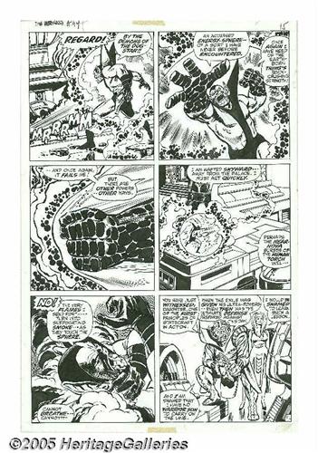 <B>John Buscema and Tom Palmer - The Avengers #94, page 11 Original Art (Marvel, 1971).</B></I> By the Demons of the Dog-Star! With an arsenal of ultra-power stolen from the Fantastic Four, the Super-Skrull applies the rock-crushing strength of the Thing, and the near-nova bursts of the Human Torch, neither of which help him break free of an accursed energy-sphere! Presented here is page eleven from the Roy Thomas story, "More Than Inhuman," with the spectacular work of penciler John Buscema and inker Tom Palmer. The image area measures 10" x 15", and aside from some tape stain residue at the top and bottom center edges, the work is in Excellent condition.