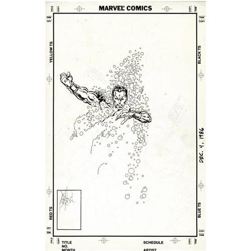 <B>John Byrne - The Avengers Unpublished Cover Original Art (Marvel, circa 1989).</B></I> Can even the Sub-Mariner withstand the brutal attack of the Lava Men? This lightly sketched and partially inked Sub-Mariner amid bubbles, unpublished John Byrne cover could be a never-completed cover slated for <B>Avengers</B></I> #306 (the only Lava Men issue in the run and one which was eventually illustrated by Paul Ryan and Tom Palmer). A hand-written note from Byrne on the back reads: "Probably this was intended for one of the Avengers issues featuring the Lava Men. But don't hold me to that." The image area measures 10" x 15", and the condition is Very Good. Signed by John Byrne at the bottom left, and on the back.<BR><BR><b>Shipping:</b> Small Flat (<a target="_blank" href="http://www.heritageauctions.com/common/shipping.php">view shipping information</a>)
