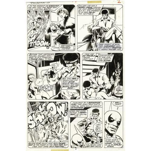 <B>John Byrne and Dan Green - Power Man #49, page 2 Original Art (Marvel, 1978).</B></I> When Power Man and Iron Fist first met, they didn't hit it off, they hit each other! John Byrne's first regular assignment at Marvel was on Iron Fist, and after that series' demise he drew the transitional issues that saw Daniel and Luke meet and become allies (this page recaps the action of their first meeting in the previous issue). Beginning with #50, the title of the series was officially changed to Power Man and Iron Fist. Colleen Wing and Misty Knight co-star here, and since the Hero for Hire roughed up both ladies, it’s no wonder Iron Fist was steamed! This page by the fabled Byrne-Chris Claremont team has an image area of 10" x 15", and the art is in Excellent condition.<BR><BR><b>Shipping:</b> Flat Material, Small (<a target="_blank" href="http://www.heritageauctions.com/common/shipping.php">view shipping information</a>)