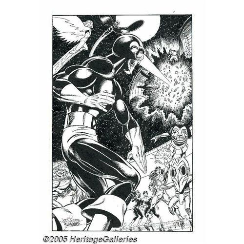 <B>John Byrne and George Perez - John Byrne X-Men Portfolio, X-Men and Alpha Flight Pin-Up Page Original Art (1983-2003).</B></I> John Byrne and George Perez have both spoken admiringly of each other's work -- here's a rare opportunity to get a collaboration between the two greats. This original piece was penciled by Byrne for the X-Men portfolio produced by Editions Deese, and appeared as plate 7 of the portfolio reproduced directly from Byrne's pencils. Subsequently, Perez inked the piece in 2003. A note detailing the history of the piece as noted above is written on the back of the page, signed by Byrne and dated April 15, 2004. A very sexy Aurora is joined by her brother Northstar as well as Alpha Flight mates Shaman, Sasquatch, and Snowbird, and X-Men Cyclops and Storm. It's a team-up not to be missed, and the same holds true for Byrne and Perez, two of the all-time fan favorites! The image area of the drawing measures 10.5"" x 16"" and the art is in Excellent condition. <BR><BR><B>Important notice:</B> Heritage usually auctions material at the rate of 200-250 lots per hour. On some occasions eBay Live bid software or the Internet may not be able to keep up with the pace of the auction. We recommend placing a realistic absentee bid now as insurance to avoid disappointment. Occasionally the auctioneer may eliminate or reject an eBay Live bid, and the auctioneer may also reopen a lot after the close of the eBay live bidding (usually because we missed an audience bid), and may reject your bid even if it shows you as the winning bidder. By bidding via eBay Live, you agree that Heritage may award the lot to another bidder at its sole discretion under the circumstances described above or any other reasonable circumstances. Since eBay bids are not shown to us until we open the lot on the floor, we treat those bids just like floor bids. In most cases the floor responds before the eBay bid is presented to us, due to Internet lag time, so for consistency we have made it