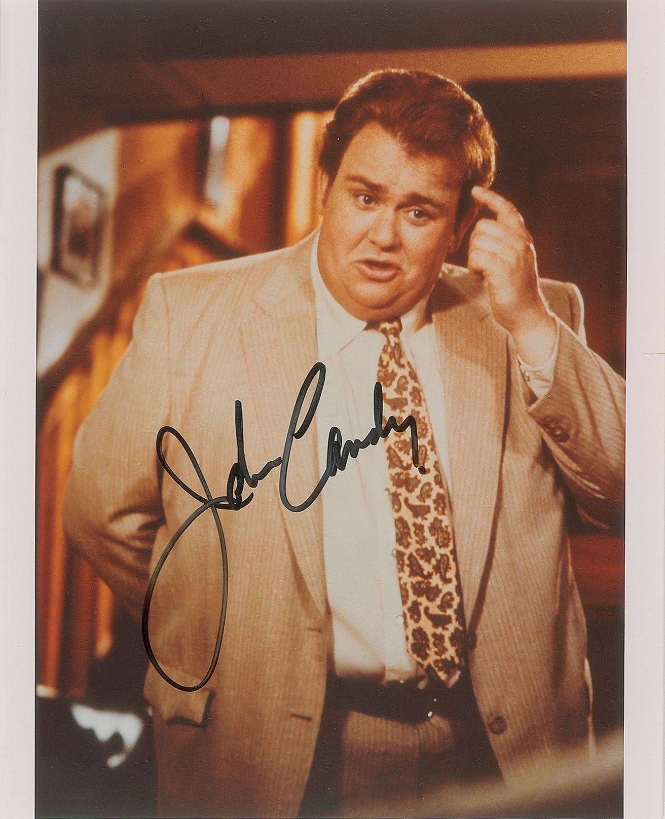 Color glossy 8 x 9.75 photo of John Candy as the title character from the 1989 film Who's Harry Crumb?, signed in black felt tip. In very fine condition.