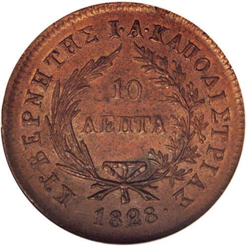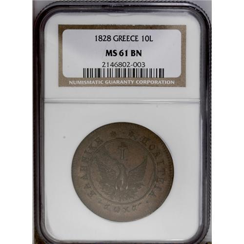 John Capodistrias 10 Lepta 1828, KM3, MS61 NGC Brown, a John Capodistrias 10 Lepta 1828,