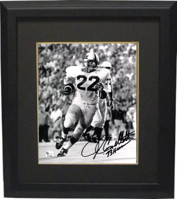 John Cappelletti attended the Penn State University, where he won the Heisman Trophy in 1973. He was inducted into the College Football Hall of Fame in 1993. Penn State football coach Joe Paterno said that Cappelletti was "the best football player I ever coached". As a senior tailback at Penn State, he gained 1,522 yards on 286 carries scoring 17 touchdowns as the Nittany Lions rolled to an undefeated season. He was awarded the 1973 Heisman Trophy, Maxwell Award, the UPI College Football Player of the Year, the Walter Camp Award as well as receiving All-America honors. John Cappelletti has hand autographed this Penn State Nittany Lions Vintage B&W 8x10 Photo with 73 Heisman inscription. Certificate of Authenticity from Athlon Sports Collectibles. Custom Black Mat and Premium Black Color Framed as shown.