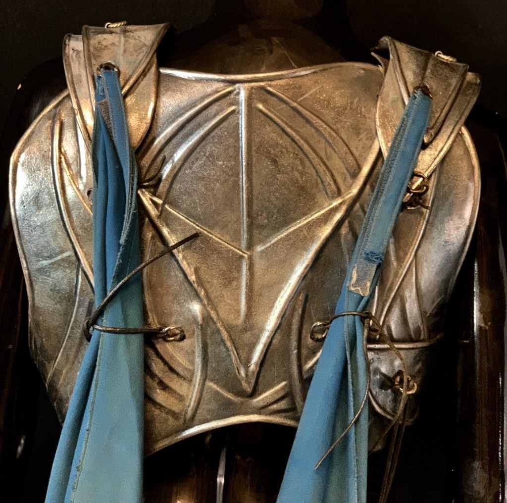 Original upper armor piece worn by a Helium female Soldier in the science fiction action film "John Carter" (2012), based on A Princess of Mars, the first book in the Barsoom series of novels by Edgar Rice Burroughs. John Carter stars Taylor Kitsch in the title role, Lynn Collins, Samantha Morton, Mark Strong, Ciarán Hinds, Dominic West, James Purefoy, and Willem Dafoe. The film chronicles the first interplanetary adventure of John Carter and his attempts to mediate civil unrest amongst the warring kingdoms of Barsoom.