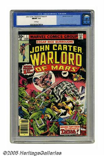 <B>John Carter, Warlord of Mars #1 (Marvel, 1977) CGC NM/MT 9.8 White pages.</B></I> Origin of John Carter. Gil Kane cover and art. Overstreet 2005 NM- 9.2 value = $9. CGC census 7/05: 37 in 9.8, none higher.