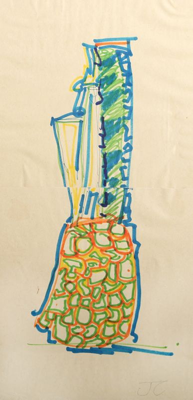John Chamberlain, Blue Pineapple, Marker and Pencil Drawing