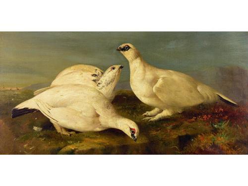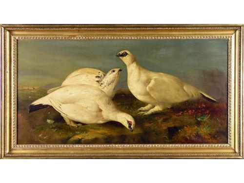 [British, act. 1841-1892] PTARMIGAN, 1869(3) Oil on canvas 13 1/2 x 26 1/2 ins. -Signed, titled & dated