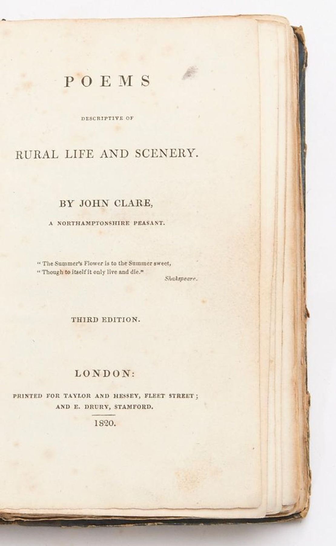 Title: Poems: Descriptive of Rural Life and Scenery Author: John Clare Place: London Publisher: Taylor and Hessey; and E Drury Stamford Date: 1820. Description: Third Edition. Hardcover. Bound in leather and cardboard board. Rubbing and scuffing of the binding and spine. preliminary pages foxed. Condition: Overall, good condition.Rubbing, chipping to leather. Edges of board are bumped and worn.