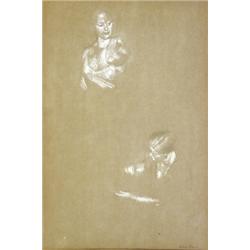 Pencil on tan paper with white heightening; apparently in good condition. Framed.*