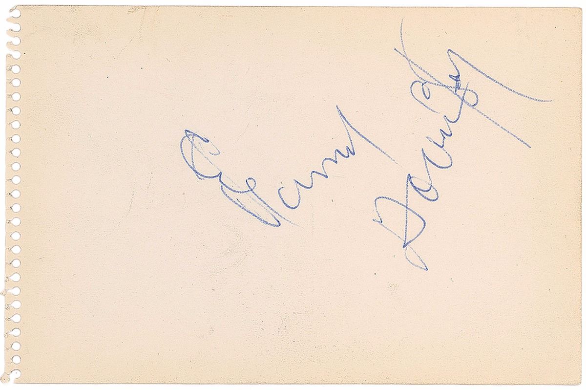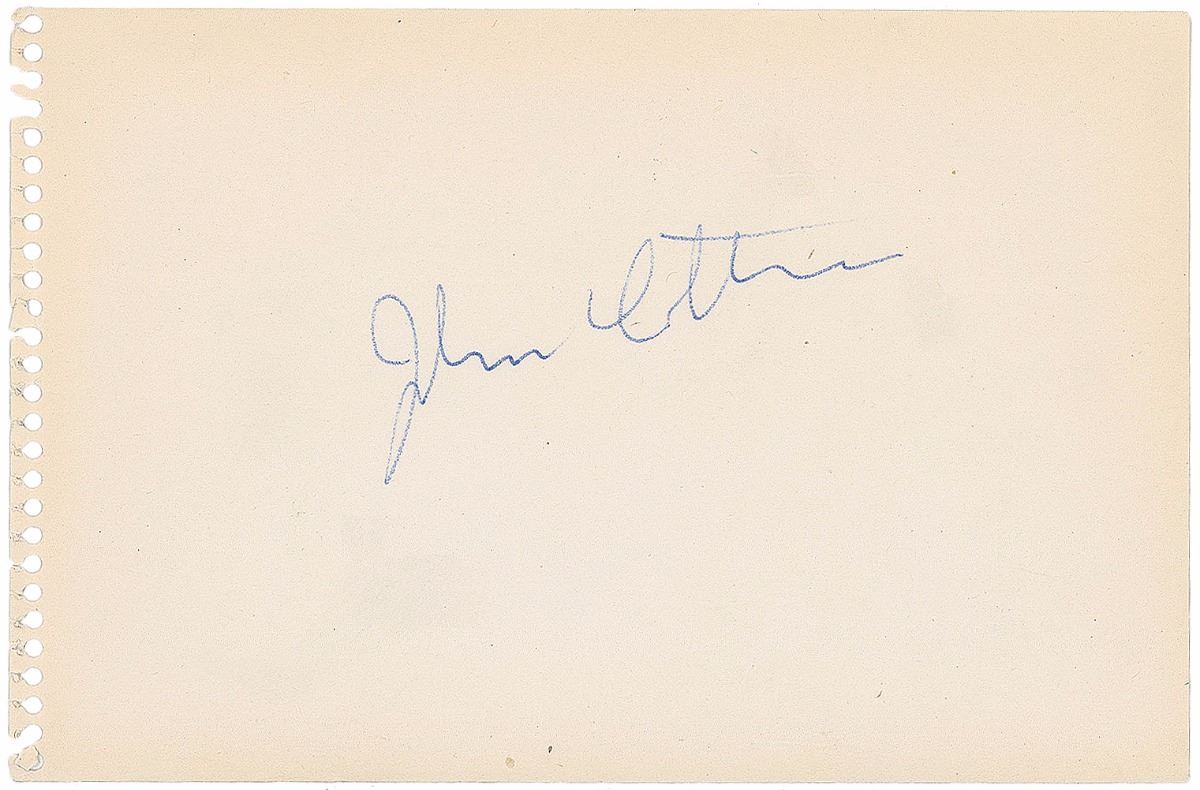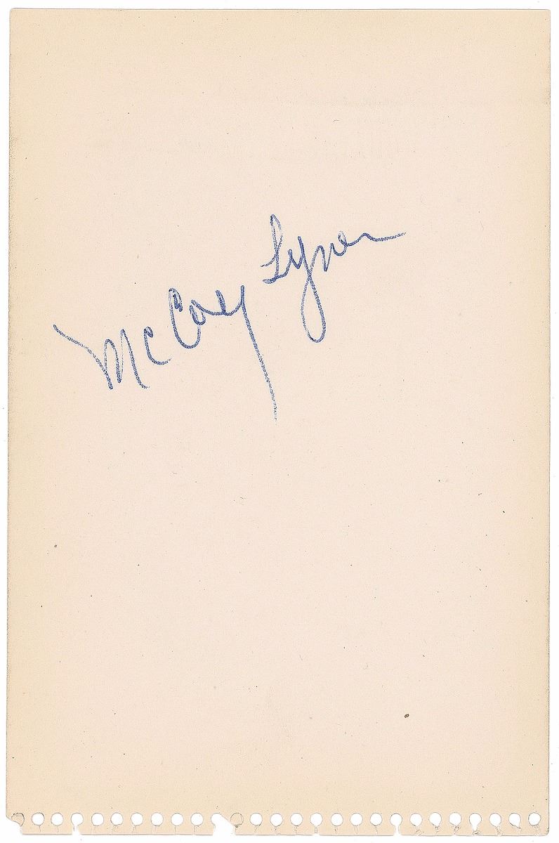 Vintage ballpoint signatures of John Coltrane, McCoy Tyner, Elvin Jones, and James Garrison on individual off-white 4.75 x 3.25 and 3.25 x 4.75 notebook pages. In overall fine condition. Consignor notes that the signatures were obtained on the night of November 21, 1961, at the Palace Hotel in Gothenburg, Sweden. A crisp, fantastic set of one of jazz history’s most famous and influential quartets.