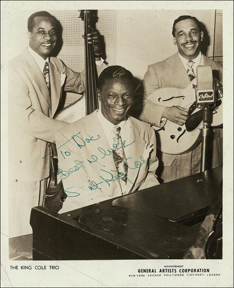 Saxophonist, band leader, and composer (1926–1967) whose brilliant improvisatory skills and experimental spirit made him one of the most influential and highly regarded musicians in the history of jazz. After playing tenor and soprano sax with Dizzy Gillespie, Miles Davis, and Thelonious Monk, he led his own groups and made such classic recordings as “Giant Steps,” “My Favorite Things,” and “A Love Supreme.” He died of liver cancer at the age of 41. Unsigned music manuscript on a partial sheet of preprinted staff paper, measuring 9.5 x 8.5, approximately 41 measures in ink by Coltrane, with note notations above each measure. Reverse bears Coltrane estate’s “2005 Jowcol Music” copyright ink stamp. In good condition, with paper loss to bottom portion of page, scattered creasing and wrinkling, paper loss to top edge, some light soiling and several edge tears. Document was originally acquired from Guernsey’s February 2005 Jazz Auction. RRAuction COA.