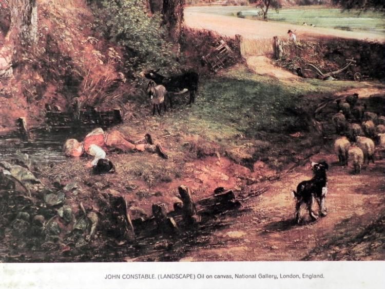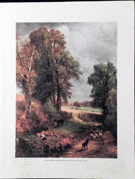 Artist: John ConstableTitle: The CornfieldOriginal in National Galley- London, EnglandMedium: Lithograph print on paperImage size: 15 1/2" x 11 1/2"Sheet size: 20 1/4" x 15 1/2"Condition: Good; staining to the bottom of the sheetBiography:John Constable (1776-1837) quietly rebelled against the artistic culture that taught artists to use their imagination to compose their pictures rather than nature itself. Although Constable produced paintings throughout his life for the "finished" picture market of patrons and R.A. exhibitions, constant refreshment in the form of on-the-spot studies was essential to his working method, and he never satisfied himself with following a formula. "The world is wide", he wrote, "no two days are alike, nor even two hours; neither were there ever two leaves of a tree alike since the creation of all the world; and the genuine productions of art, like those of nature, are all distinct from each other. Constable painted many full-scale preliminary sketches of his landscapes in order to test the composition in advance of finished pictures. These large sketches, with their free and vigorous brushwork, were revolutionary at the time, and they continue to interest artists, scholars and the general public. Possibly more than any other aspect of Constable's work, the oil sketches reveal him in retrospect to have been an avant-garde painter, one who demonstrated that landscape painting could be taken in a totally new direction.*Retrieved from: http://en.wikipedia.org/wiki/John_Constable