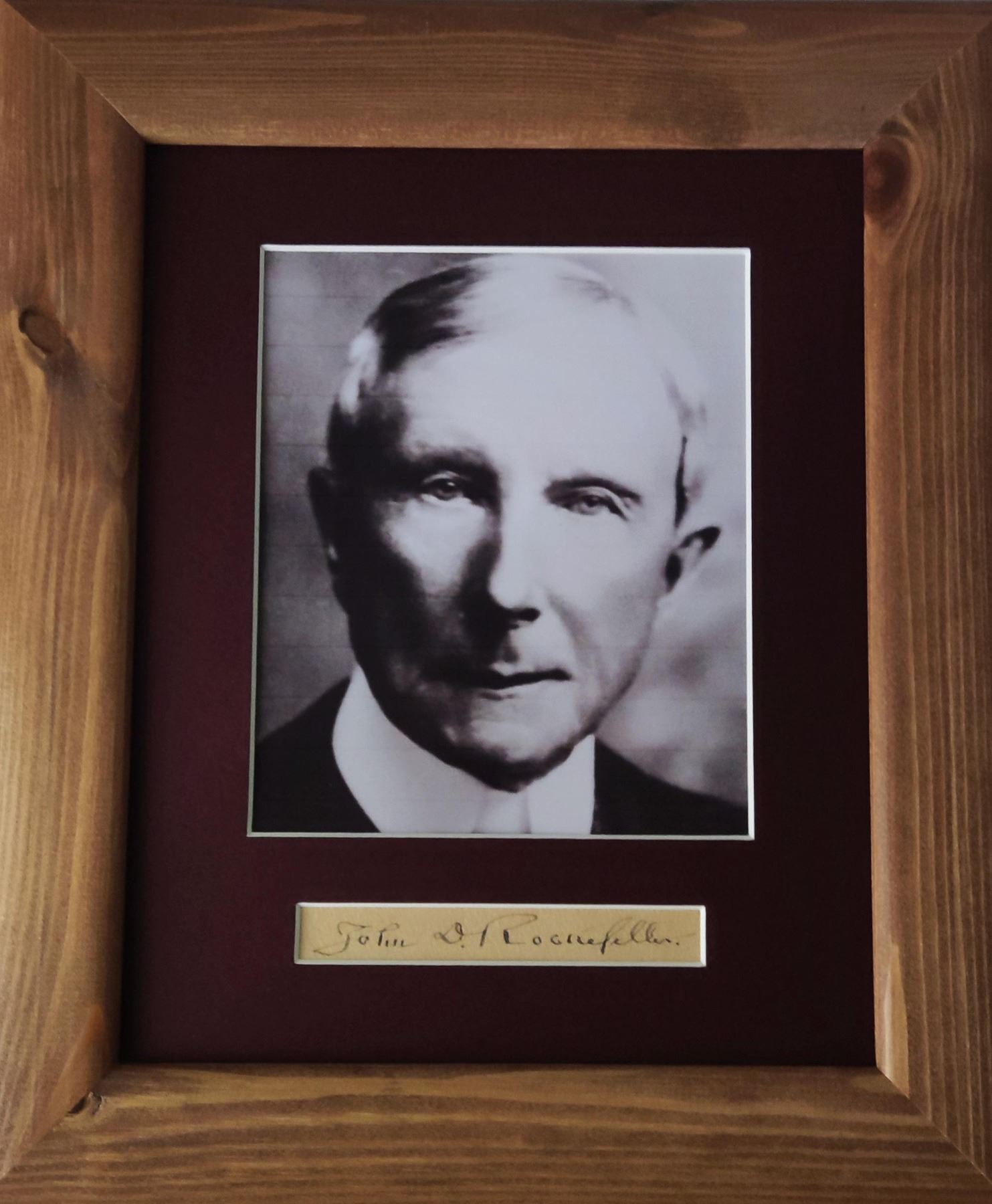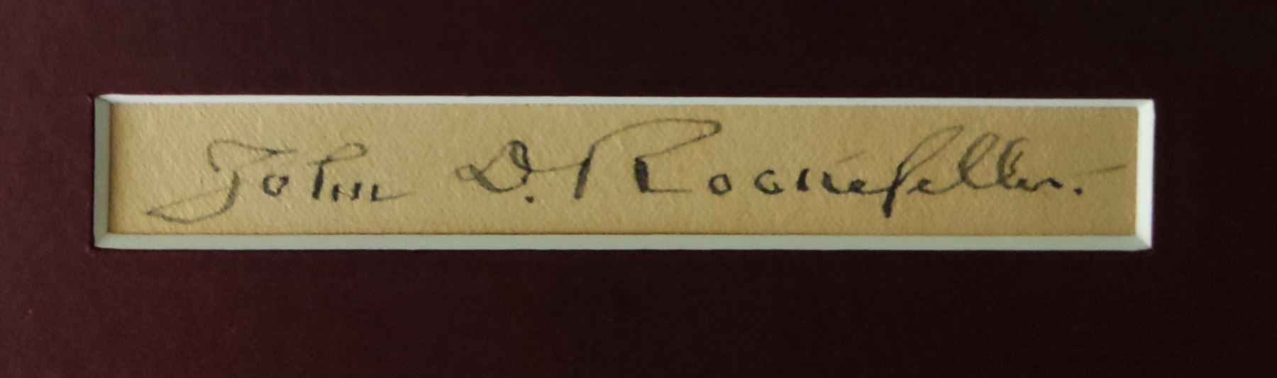 A mounted and framed autograph of John F Rockefeller, supplied with coa.