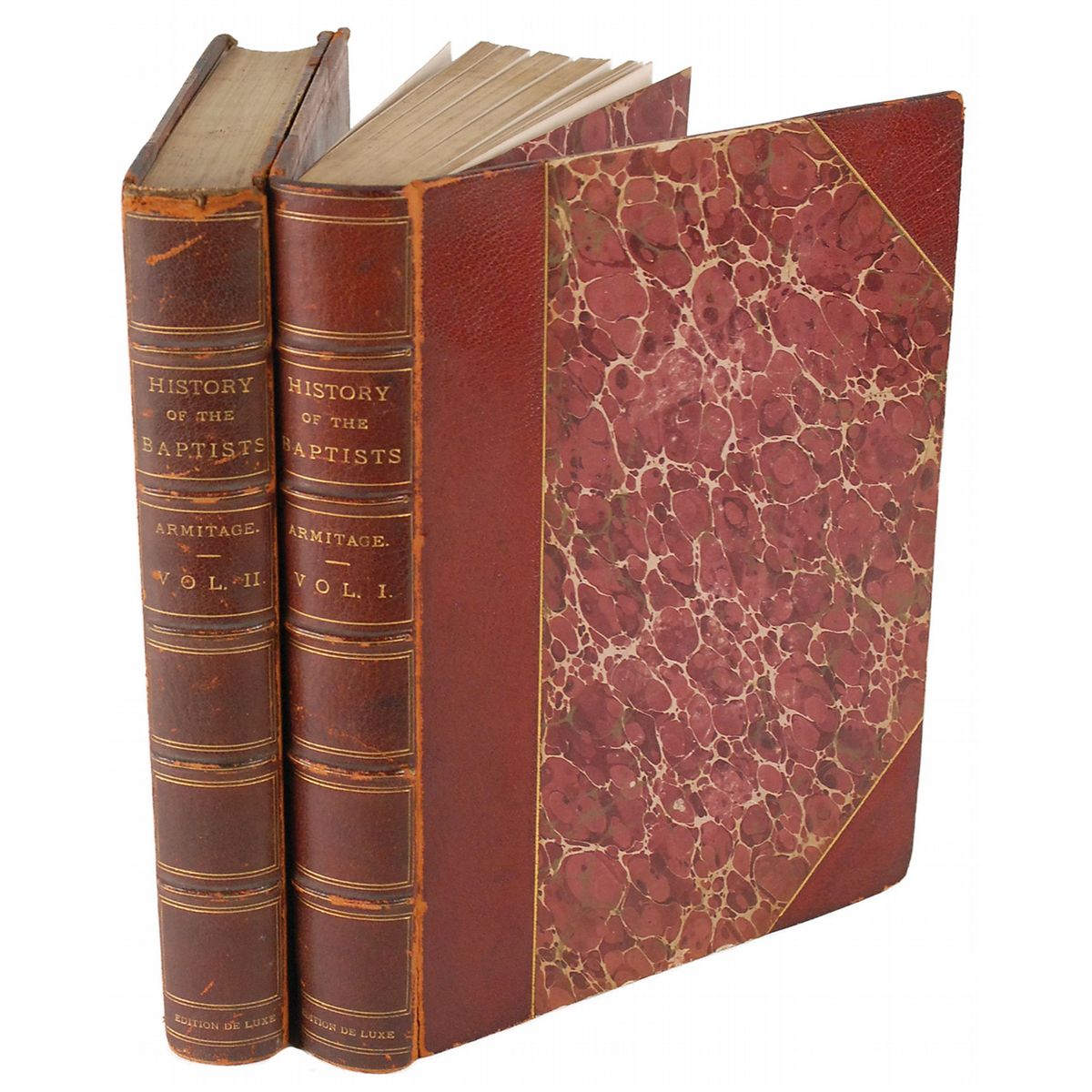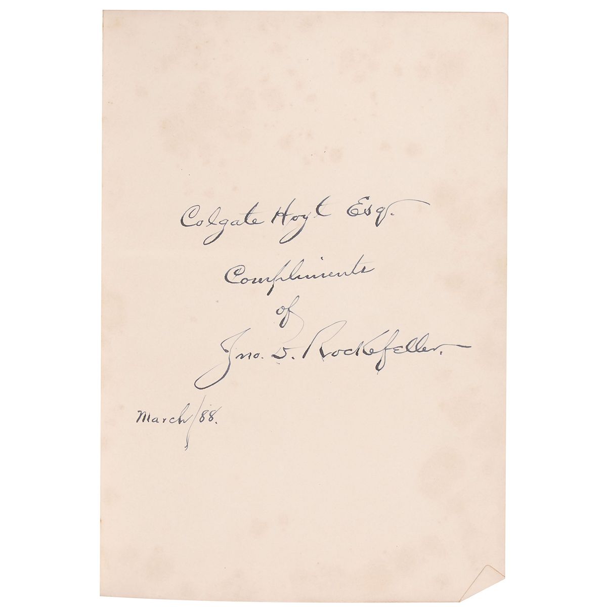 Signed book: The History of the Baptists, Volumes I and II. Limited edition of 1000 copies (this being No. 10). NY: Bryan, Taylor and Co., 1887. Hardcover, 8.5 x 11.5, 978 pages. Signed and inscribed on the second free end page of volume I, to American businessman “Colgate Hoyt, Esq. Compliments of Jno. D. Rockefeller March /88.” Scattered light foxing and rippling to signed page, otherwise fine condition. Hoyt was a director of the Oregon Railway and Navigation Company, and one of the founders of Everett, Washington. Book condition: VG-/None.