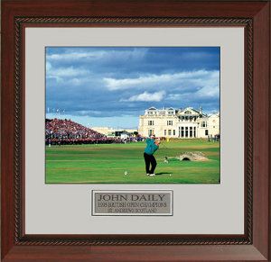 In 1995, John Daly unexpectedly won the British Open in a playoff with Italian Costantino Rocca at St. Andrews. Daly is known primarily for his driving distance off the tee (earning him the nickname "Long John"), his non-country club appearance and attitude, and his rough-and-tumble personal life. Get this Custom Framed 16X20 Photo of John Daly from the 1995 British Open Championship.
