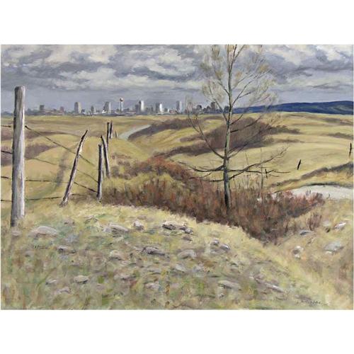 Canadian ASA [1900-1980] CALGARY FROM COUNTRY oil on board 18 x 24 in. (45.7 x 61 cm) signed & titled