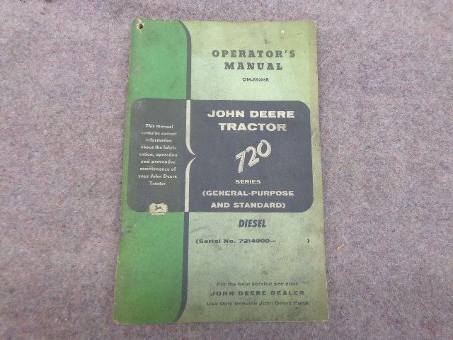 The is an operators manual for JD Tractor 720 Series Diesel Serial No. 7214900 - OM-R2086R