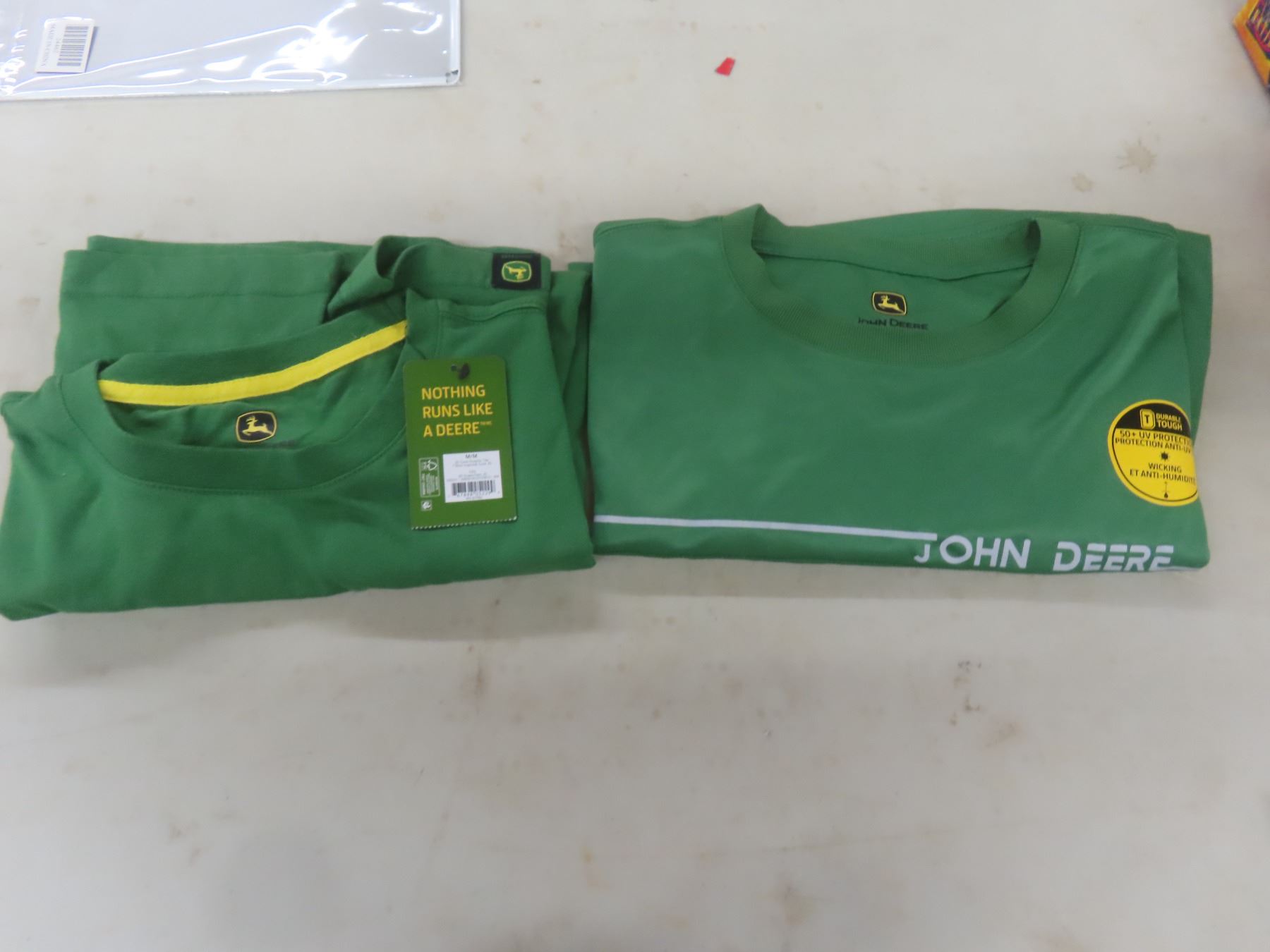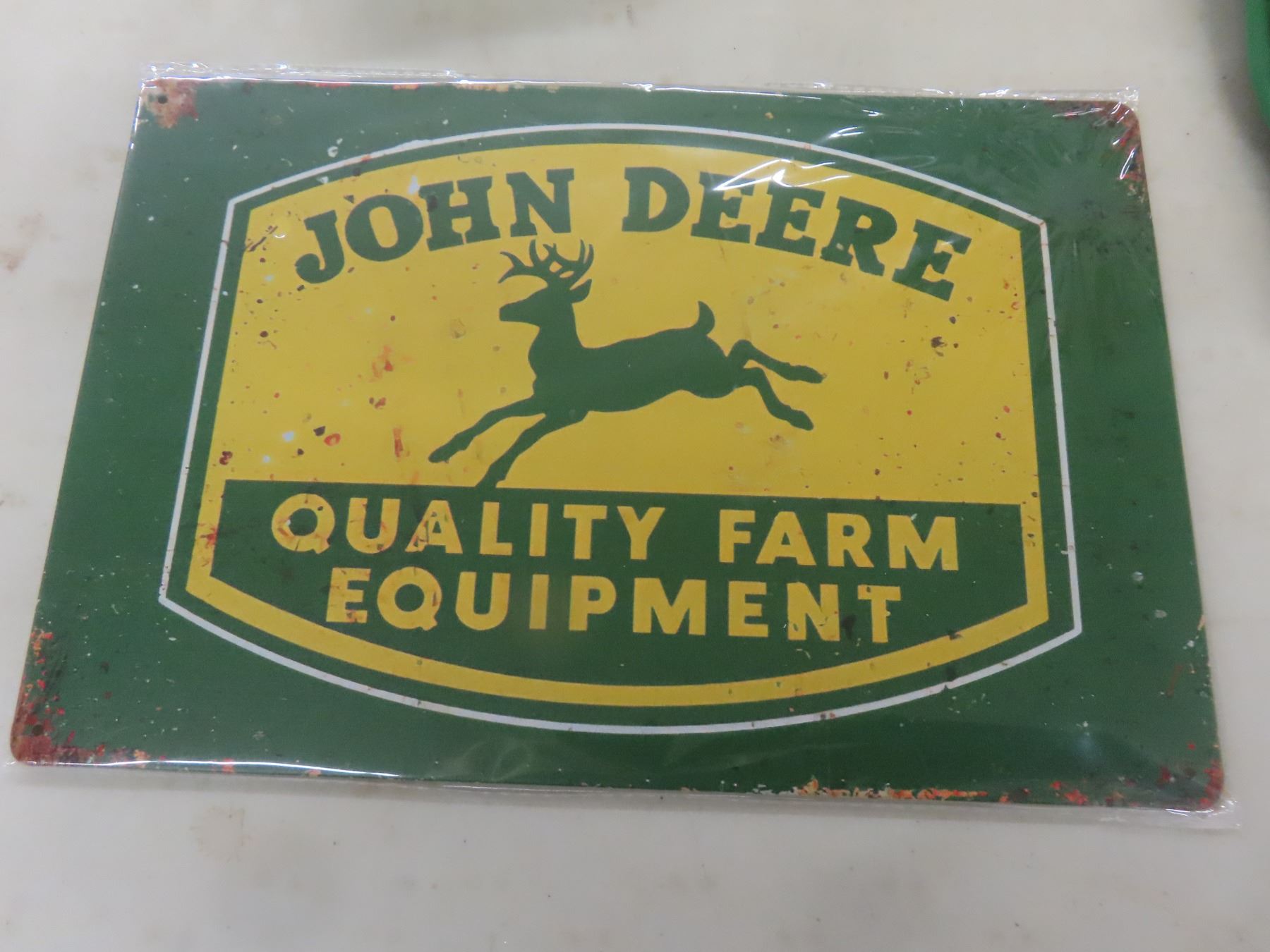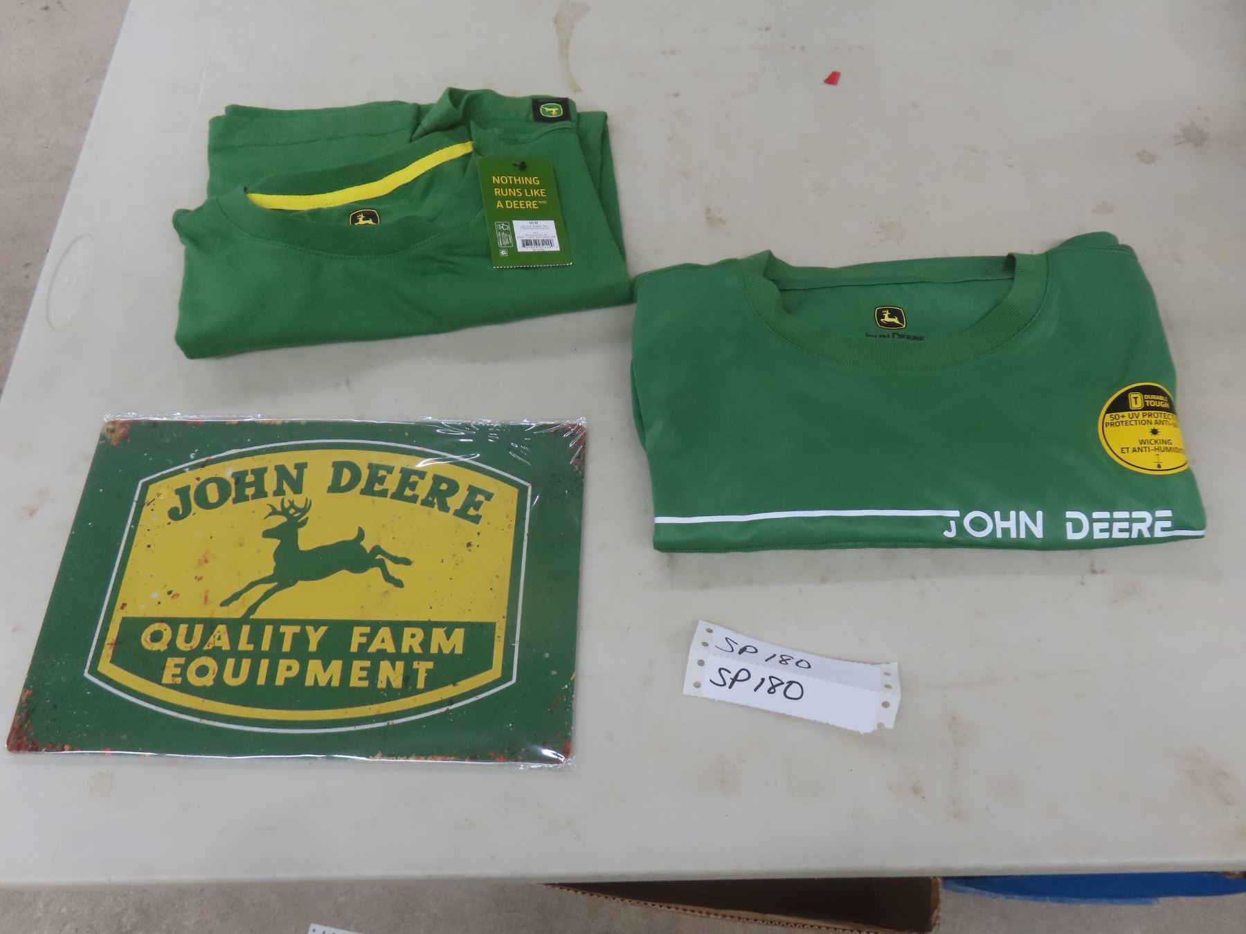 John Deere 8" x 12" Metal Sign and Two Medium T-Shirts